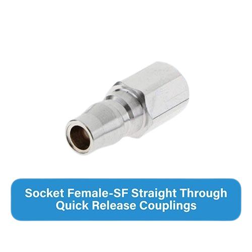 Dimensions: As per ANSI B16.11, 16.9, B2.1 NPT, etc. End Connections like Screwed ends, Hose Shank, Flanged, Weld-able are available. Material: ANSI 304 SS Stainless Steel , 316 SS Stainless Steel, 304 L SS Stainless Steel, 316 L SS Stainless Steel, Brass, Carbon Steel, MS. We manufacture a wide variety of Socket Female-SF | Straight Through Quick Release Couplings which finds applications in numerous industries like Oil & Gas Industries, Chemical Industry, Nuclear Energy Sector, Petroleum Industries, Defence Industry, and Aerospace Industry. Features: Sturdy, reliable, and will endure years of use or disuse. Resistant to corrosion and chemical abrasion. Tough make, durable and break proof. Permits easy, safe, quick & reliable connections between delivery lines, pressure hoses etc. Connection disconnection of fluid systems is as easy as plugging in an electric gadget. Designed for easy hand action for use with fitting attachments accessories largely on transportable machinery.