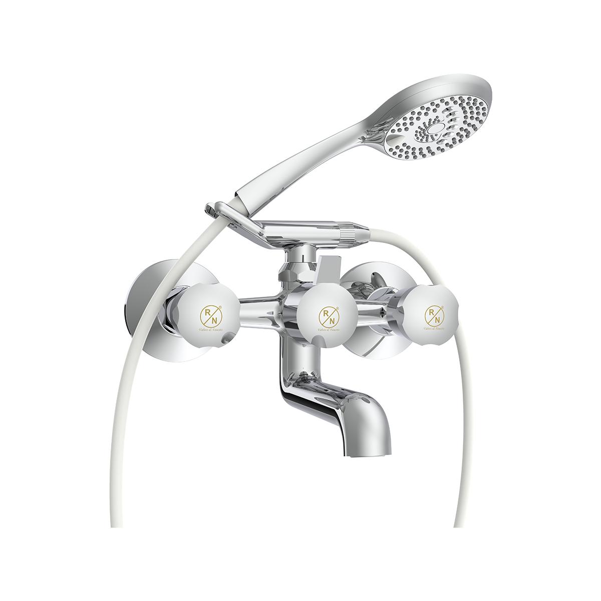 Introducing the RN Wall Mixer with Provision for Hand Shower with Crutch. Crafted from premium brass and finished with a sleek chrome plating, this wall mixer offers both durability and modern style. The design includes a convenient provision for a hand shower with a crutch, adding versatility to your bathing experience. The chrome finish resists corrosion, ensuring long-lasting shine and performance. Upgrade your bathroom with the functional and elegant RN Wall Mixer with Provision for Hand Shower.