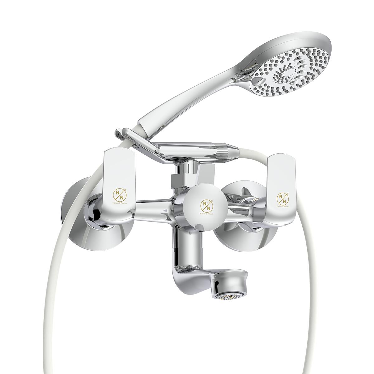 Introducing the RN Wall Mixer with Provision for Hand Shower with Crutch. Crafted from premium brass and finished with a sleek chrome plating, this wall mixer offers both durability and modern style. T...
