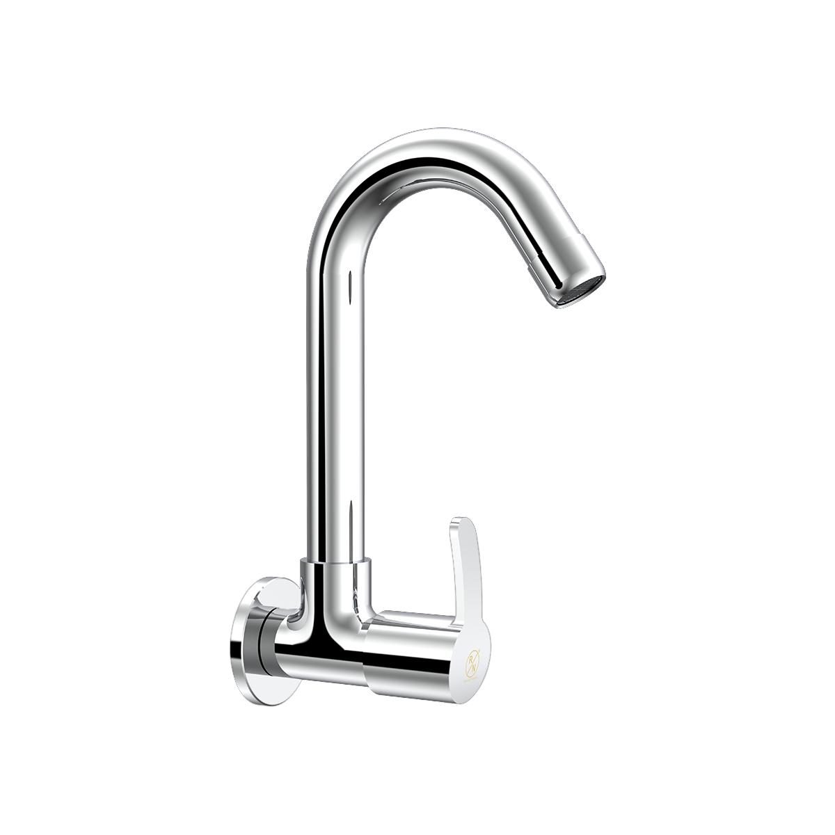 Introducing the RN Wall Mounted Sink Cock with Swivel Spout and Flange. Made from premium brass, this sink cock ensures durability and longevity. Its chrome-plated finish adds a sleek, modern touch tha...