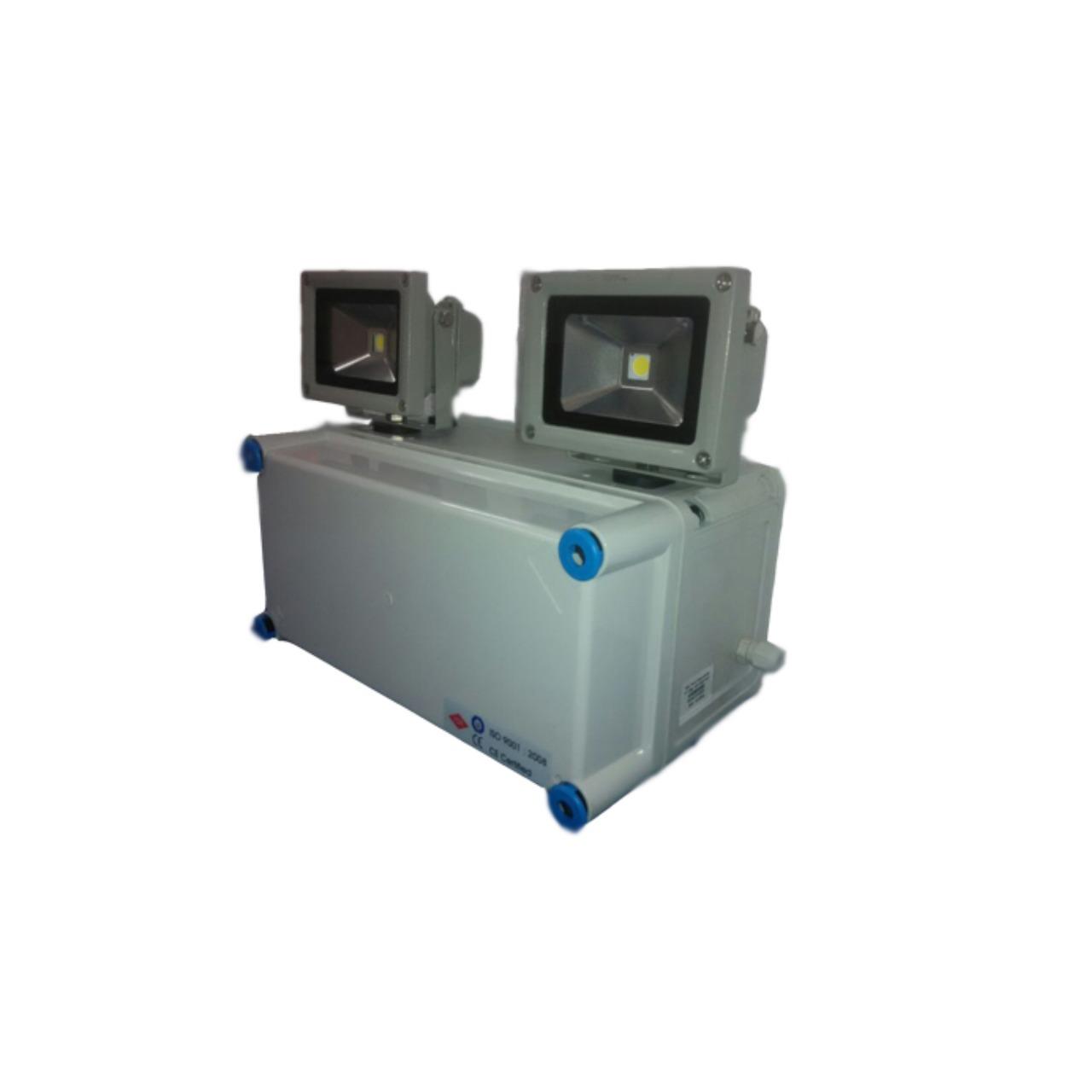 2 X 10 W LED FLOOD LIGHT WITH EXIT SIGN, 1.5 HRS BATTERY BACKUP