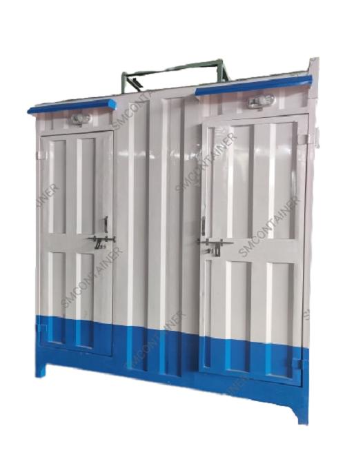 S M CONTAINER Mild Steel 8.5 ft Portable Toilet Cabin White and Blue