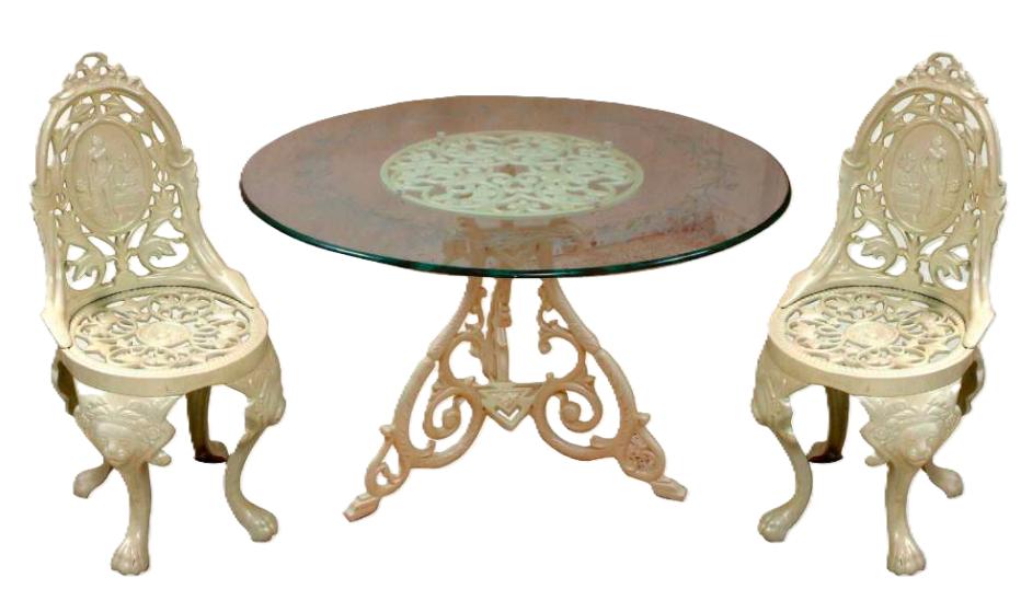 SE Cast Iron 2 Seater Glass Top Dining Table Set Round Beige