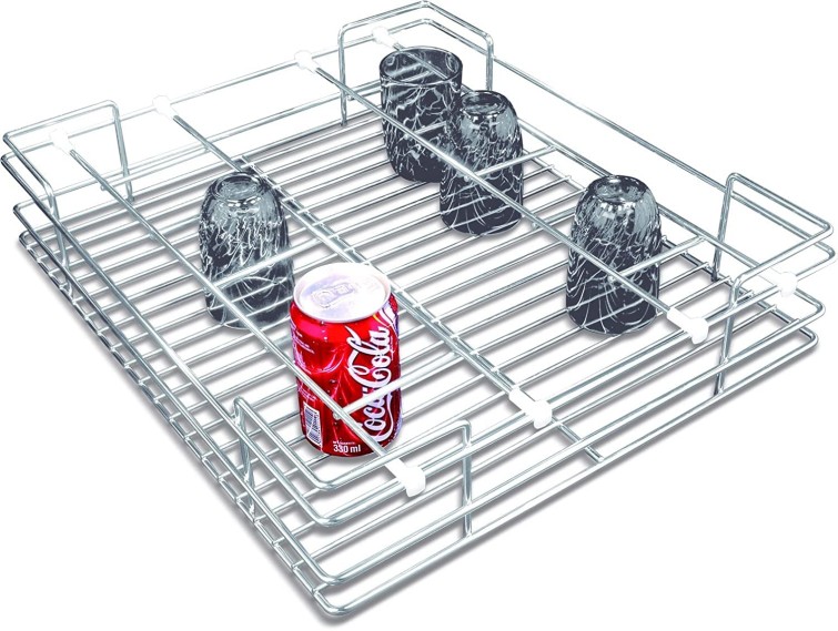 Shree Khodal Stainless Steel Rectangular Glass Basket Kitchen Storage Organiser 15 x 24 x 4 inch_0