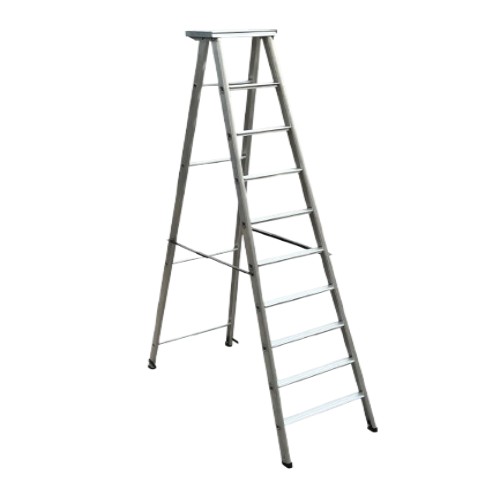 Heavy Duty aluminium folding ladder with a stable work platform, suitable for safe maintenance and installation tasks.