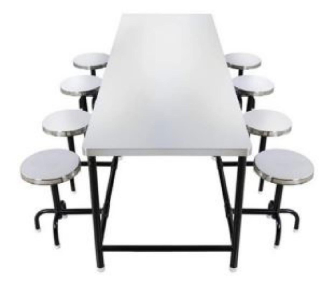 Stainless Steel 8 Seater Canteen Dining Table Fixed Chair Silver