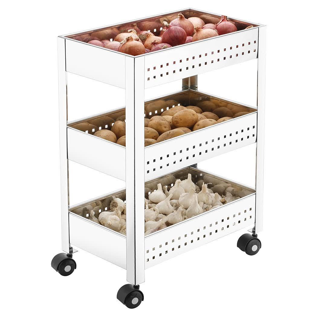 Stainless Steel 3 Shelves Vegetable Rack Trolley 60 x 40 x 90 cm