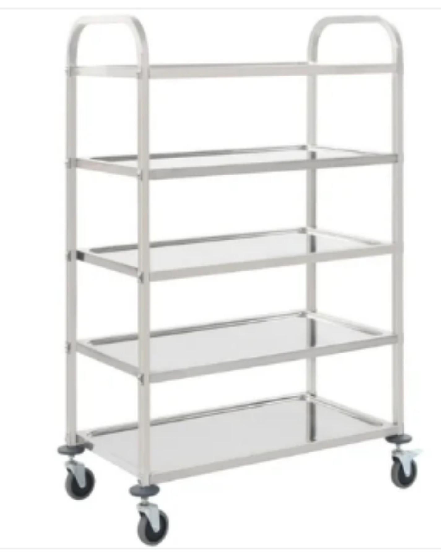Stainless Steel 5 Vessel Food Serving Trolley Silver_0