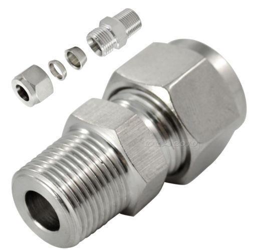 CONNECTOR; SS; TYPE OF ENDS :- FERRULE TYPE; PIPE DIAMETER :- 1/2"OD x 1/2"NPT(M)