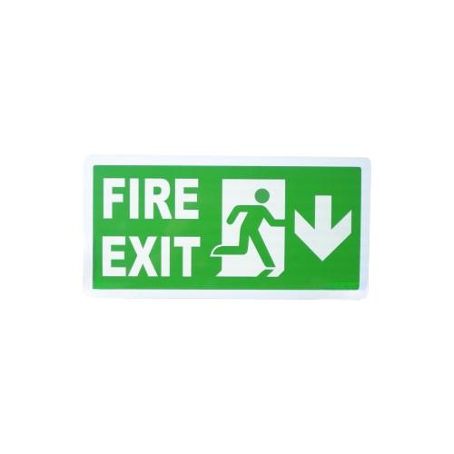 Fire Exit Signage Board with the symbol of Directional Arrow( Down Arrow) and Running Man. We use a high-quality 3MM ABS Sheet of 12*6” rectangular shape with round corners for a comfortable hold. Fire Exit Signage is manufactured as per ISO safety norms. The signage has a green background with white color text and symbols. We do direct printing for a durable and long-lasting print. The signage is durable, weather resistant, and long service life. Fire Exit Signage is installed to guide the exit path to the occupants in an emergency. The safety signage is universal and mandate to install for the fastest escape from the place in a safe manner. SUNSIGNS also provides superior quality Glow in Dark applications for the bright and continuous glow of the message at night or after power failure.