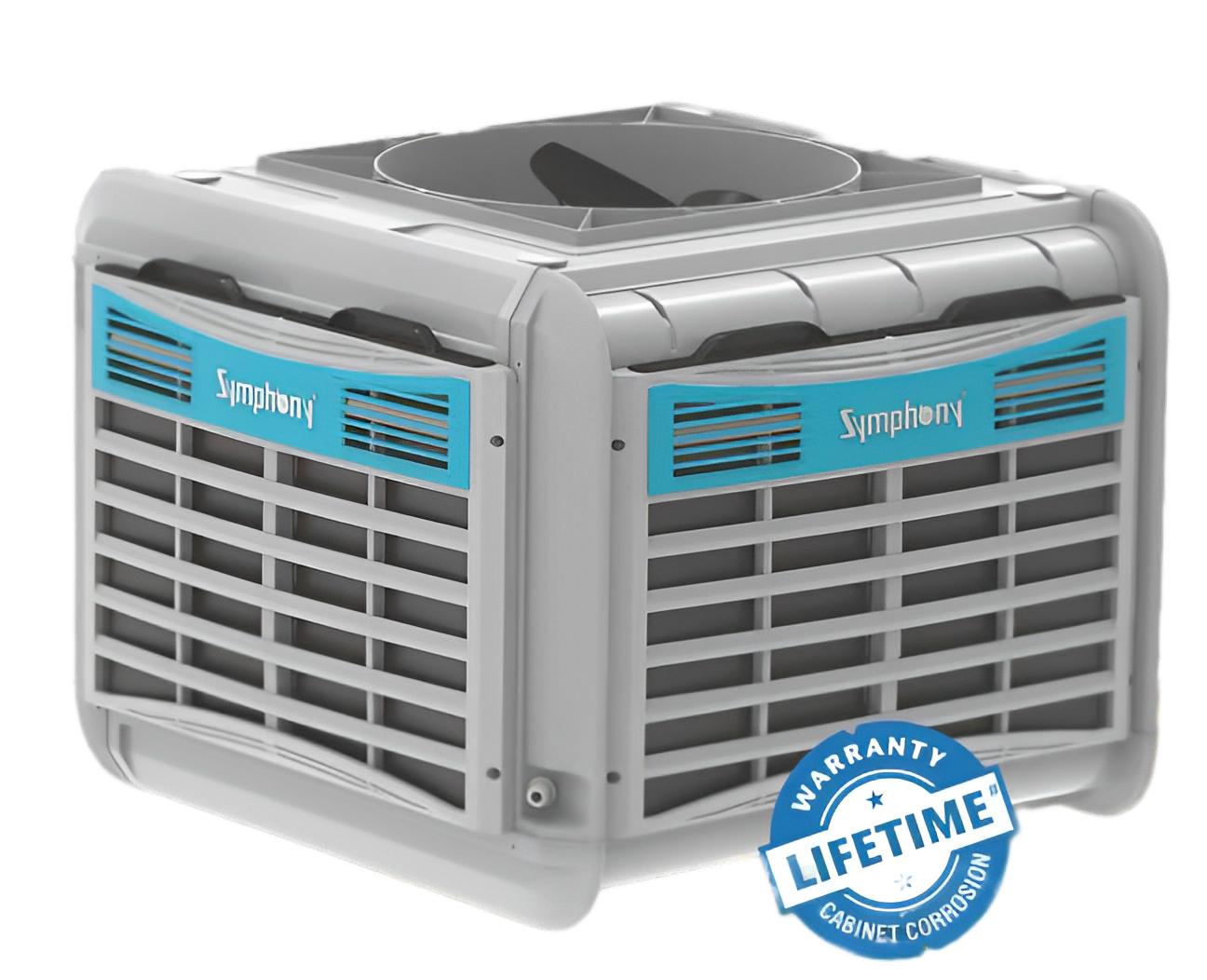 Modular units suitable for any area.One unit can cool up to 2000 sq.ft. Symphony Cooler Cool Flow Dispenser for enhanced cooling. Industrial Cooler Weather resistant UV Stabilized engineering plastic b...