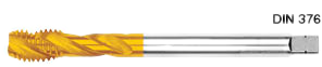 SPIRAL FLUTE – These taps are used to produce a thread close to the bottom of a blind hole and therefore have a very short lead. The right hand spiral cut of the flutes acts to force the swarf away from the cutting teeth to the rear of the flutes and out of the hole. They are better on materials which form long continuous stringy swarf, rather than chips. They are also better to tap a thread in a hole where there is a break in the material, e.g. another hole, as the spiral fluting helps the tap to pick up on the other side. Spiral flute taps can have slow or fast helix angles.