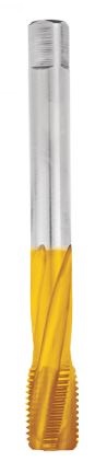 SPIRAL FLUTE – These taps are used to produce a thread close to the bottom of a blind hole and therefore have a very short lead. The right hand spiral cut of the flutes acts to force the swarf away from the cutting teeth to the rear of the flutes and out of the hole. They are better on materials which form long continuous stringy swarf, rather than chips. They are also better to tap a thread in a hole where there is a break in the material, e.g. another hole, as the spiral fluting helps the tap to pick up on the other side. Spiral flute taps can have slow or fast helix angles.