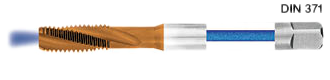 SPIRAL FLUTE – These taps are used to produce a thread close to the bottom of a blind hole and therefore have a very short lead. The right hand spiral cut of the flutes acts to force the swarf away from the cutting teeth to the rear of the flutes and out of the hole. They are better on materials which form long continuous stringy swarf, rather than chips. They are also better to tap a thread in a hole where there is a break in the material, e.g. another hole, as the spiral fluting helps the tap to pick up on the other side. Spiral flute taps can have slow or fast helix angles.