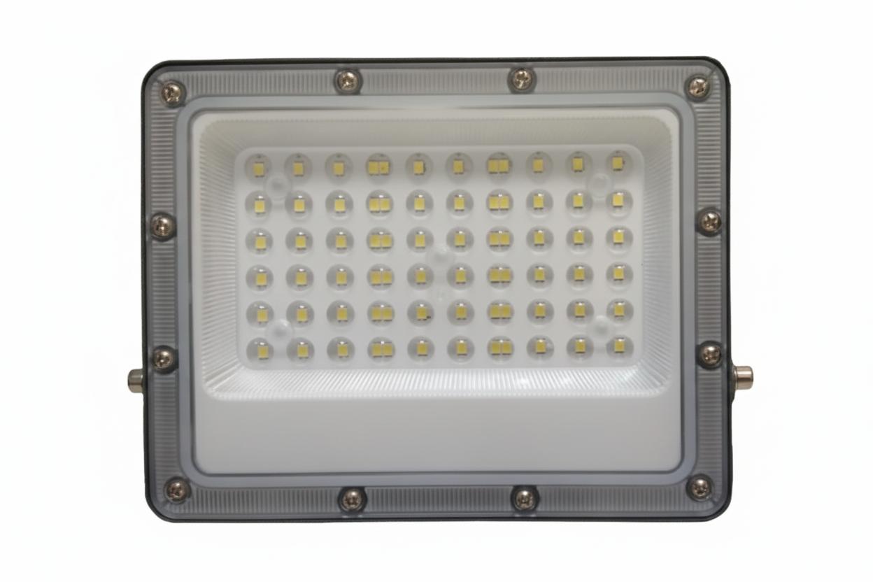 This 50W LED Flood Light offers powerful illumination with 6000 lumens output. Constructed using die-cast aluminum housing and tempered glass, it ensures excellent heat dissipation and long durability. Its IP65 rating makes it ideal for outdoor lighting such as warehouses, landscapes, boundary walls, building exteriors, and security areas. With a lifespan of 50,000 hours and high energy efficiency, it reduces maintenance and electricity costs while delivering reliable, bright performance.