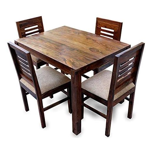Wooden 4 Seater Traditional Dining Table Set Square Brown