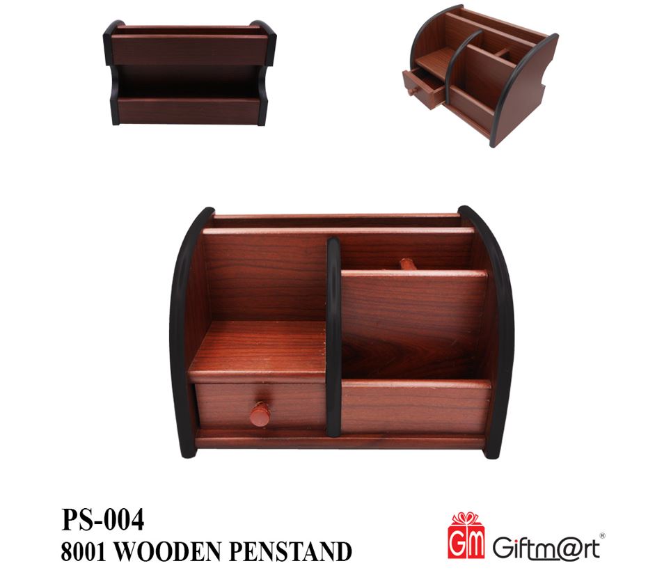 Wood Brown Card and Pen Holder Pen Stand