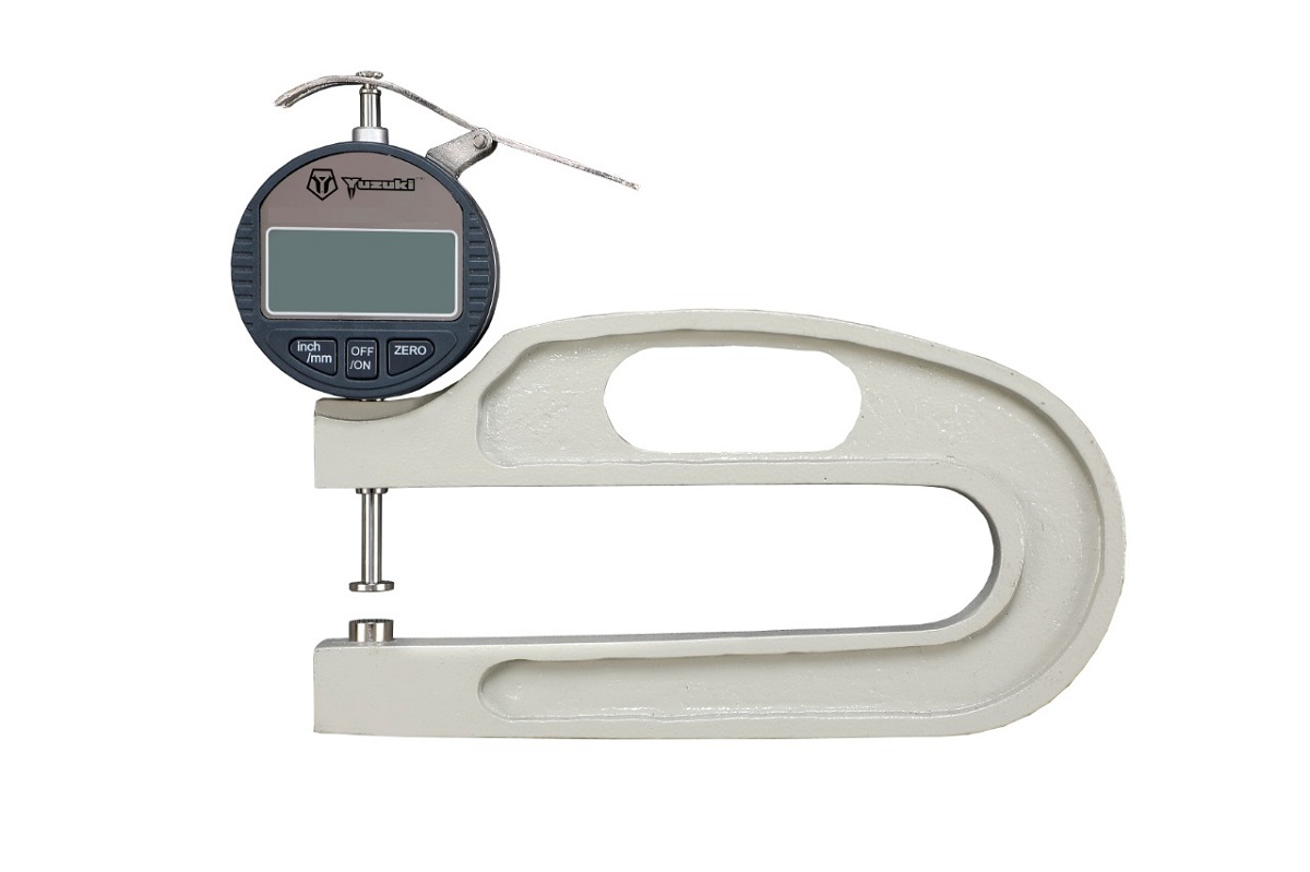 YUZUKI Digimatic Thickness Gauge MM / INCH Conversion. Response Speed <5ms. LCD - 20mm. Low Power Consumption With Long Battery Life. Anvil Dia Size: 10mm, 20mm, 25mm, 30mm Available