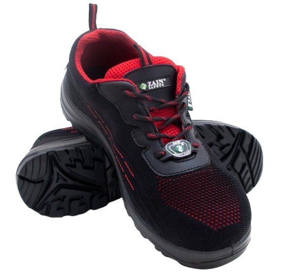 Zain Smoke Dry Fit Knit Breathable Steel Toe Safety Shoes Black and Red